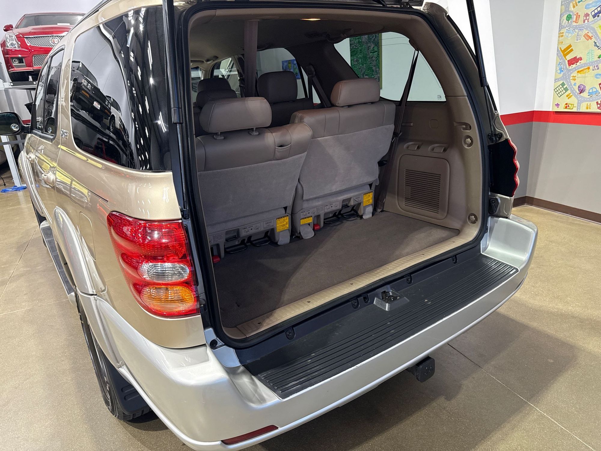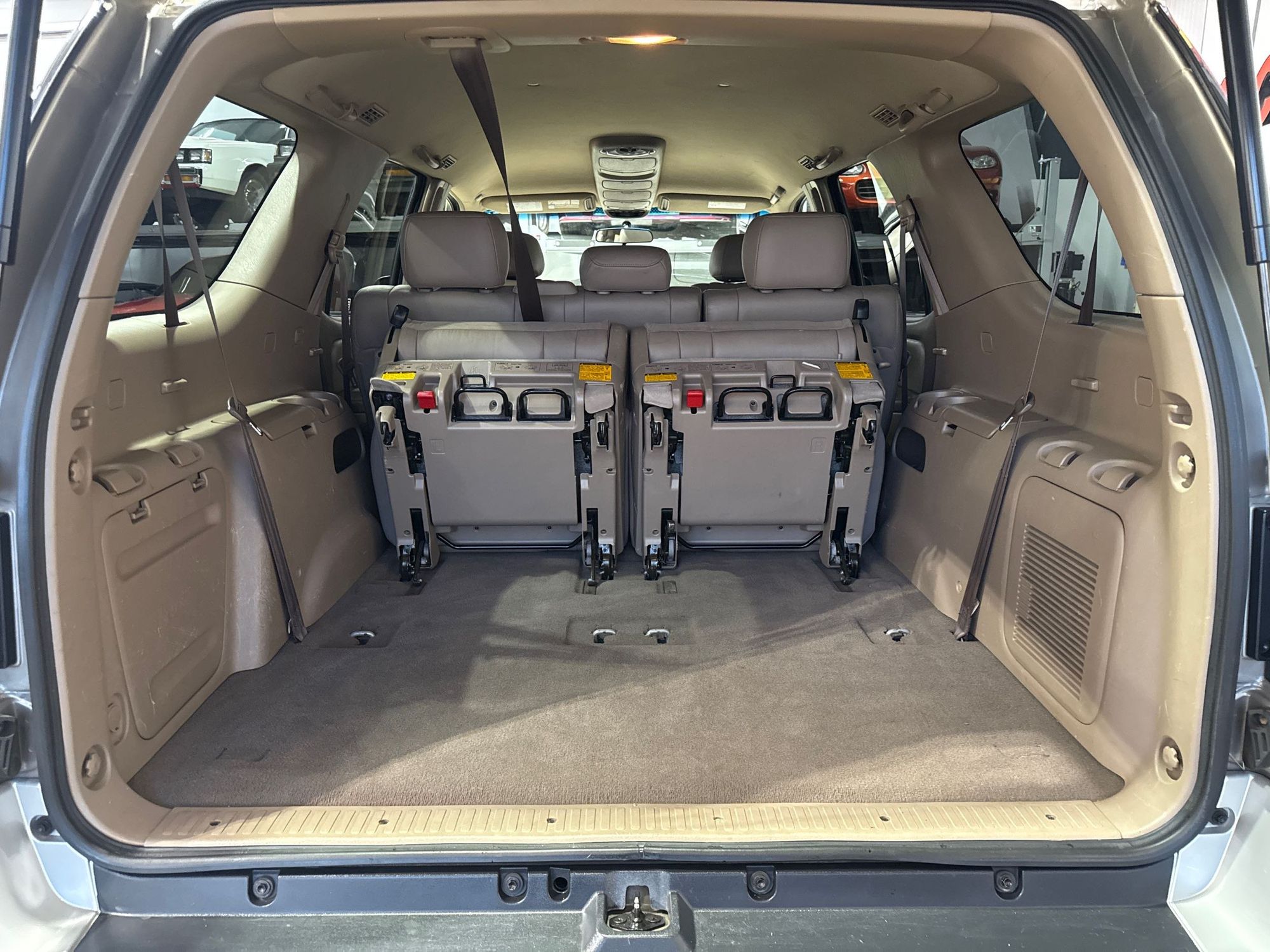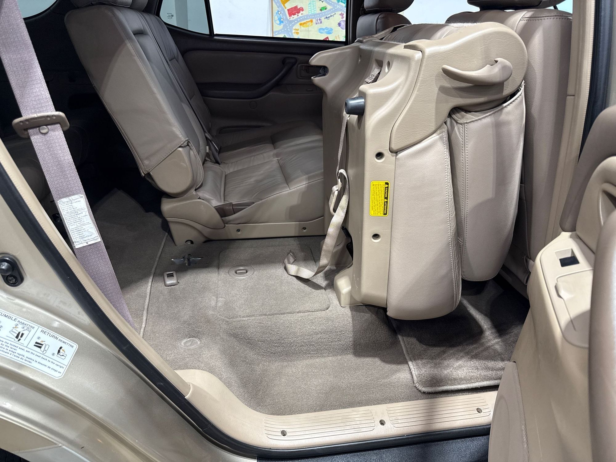 Third-row seatback upholstery: Carpet third-row seatback upholstery