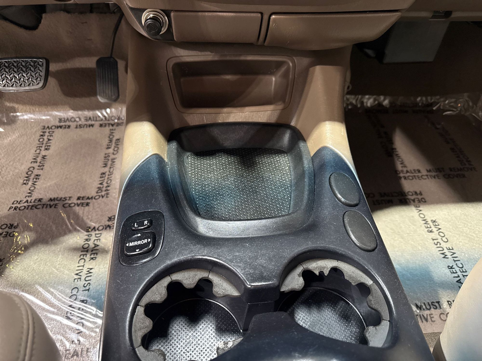 Floor console storage: Covered floor console storage