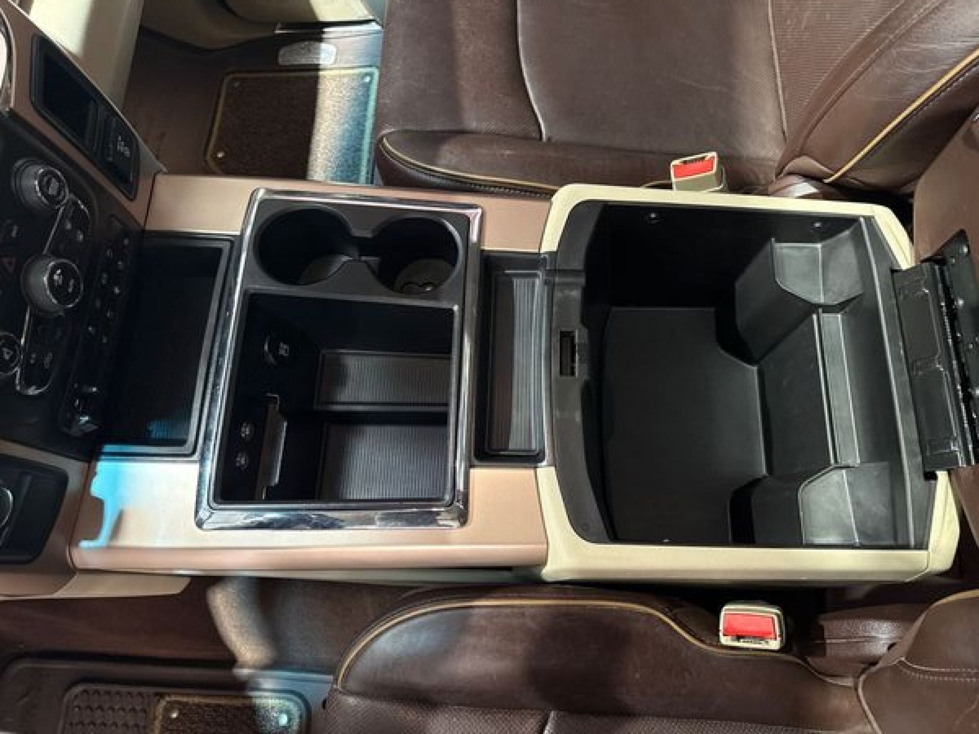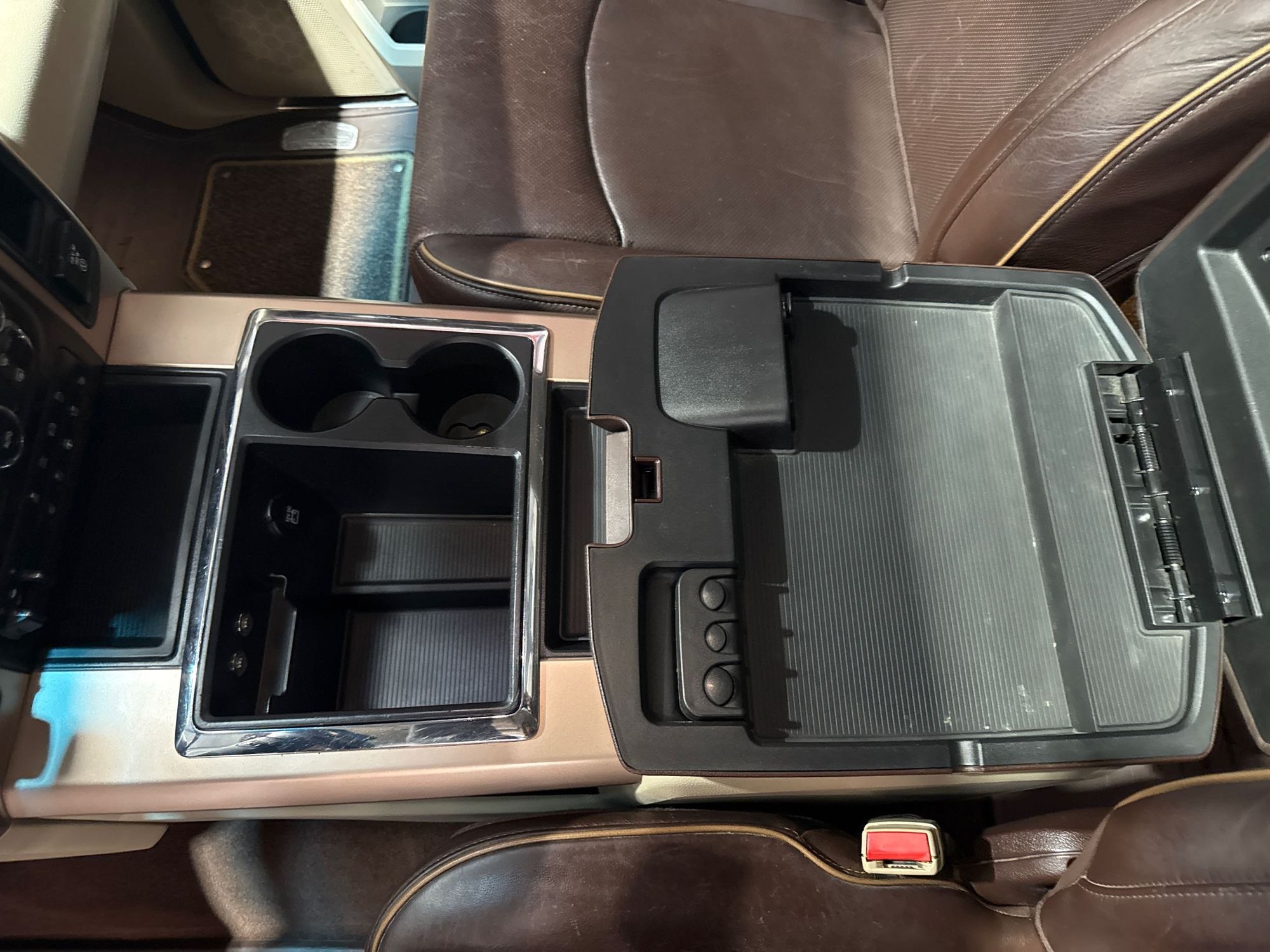Floor console storage: Covered floor console storage