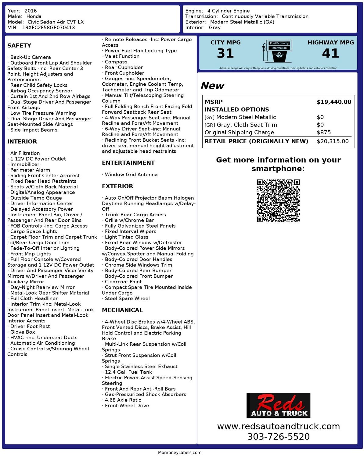 Front seatback upholstery: Cloth front seatback upholstery