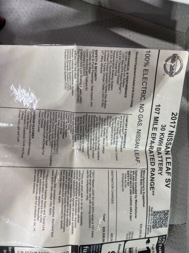 BRAND NEW EV BATTERY JUST INSTALLED BY NISSAN 03-10-2026!! Check out his 1-Owner 2017 Nissan Leaf EV with accident-free CARFAX history report and only 58,000 miles! This Leaf just received a brand new EV battery from Nissan so you can buy and drive with confidence! Remember, we also never charge a dealer handling or doc fee, include a limited warranty on most vehicles, and offer great protection plans at an affordable price to help protect your purchase for years to come.