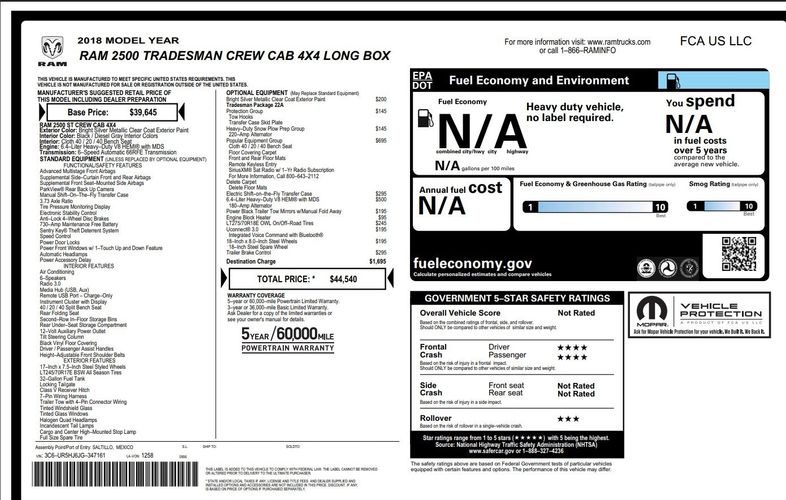 CLEAN 2018 RAM CREW CAB 2500 4X4 WITH 8 FOOT BED, 6.4 HEMI AND ACCIDENT-FREE CARFAX, JUST SERVICED IN OUR SHOP WITH NEW BRAKES, ROTORS, FRESH OIL AND FILTERS, READY FOR WORK OR PLAY! Red's Auto And Truck is pleased to present this clean 2018 Ram 2500 Crew Cab 4x4. If you are looking for an affordable heavy-duty option this should be on your short list! This Ram features an accident-free CARFAX history report and has nice options including built-in trailer brake controller, 6.4 Hemi V-8, Heavy Duty Snow Plow Prep Package with 220 amp alternator, Electric Shift On The Fly 4X4, Engine Block heater, U-Connect 3.0 with blue tooth! Remember, we also never charge a dealer handling or doc fee, include a limited warranty on most vehicles, and offer great protection plans at an affordable price to help protect your purchase for years to come.