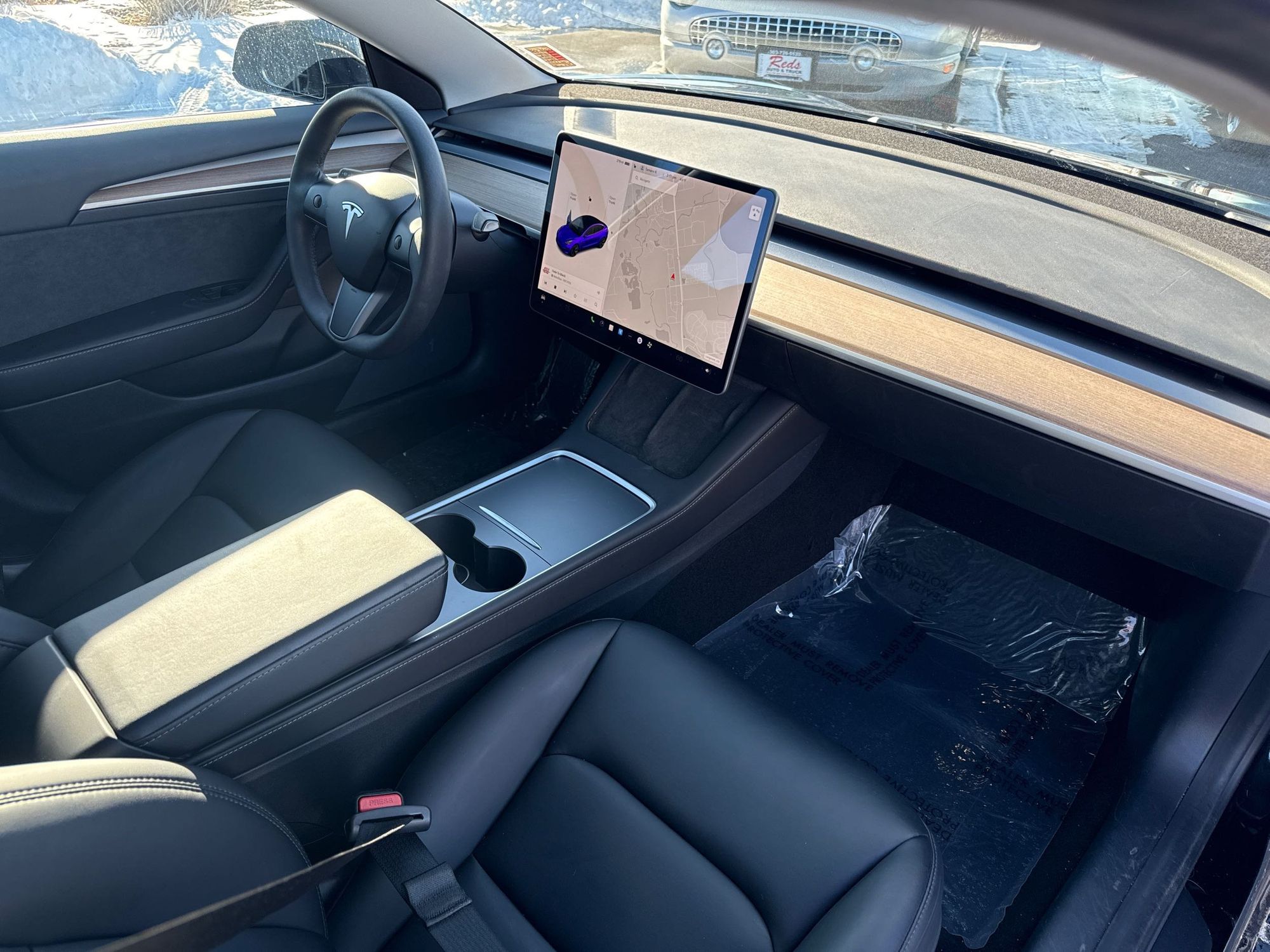 Front seatback upholstery: Plastic front seatback upholstery