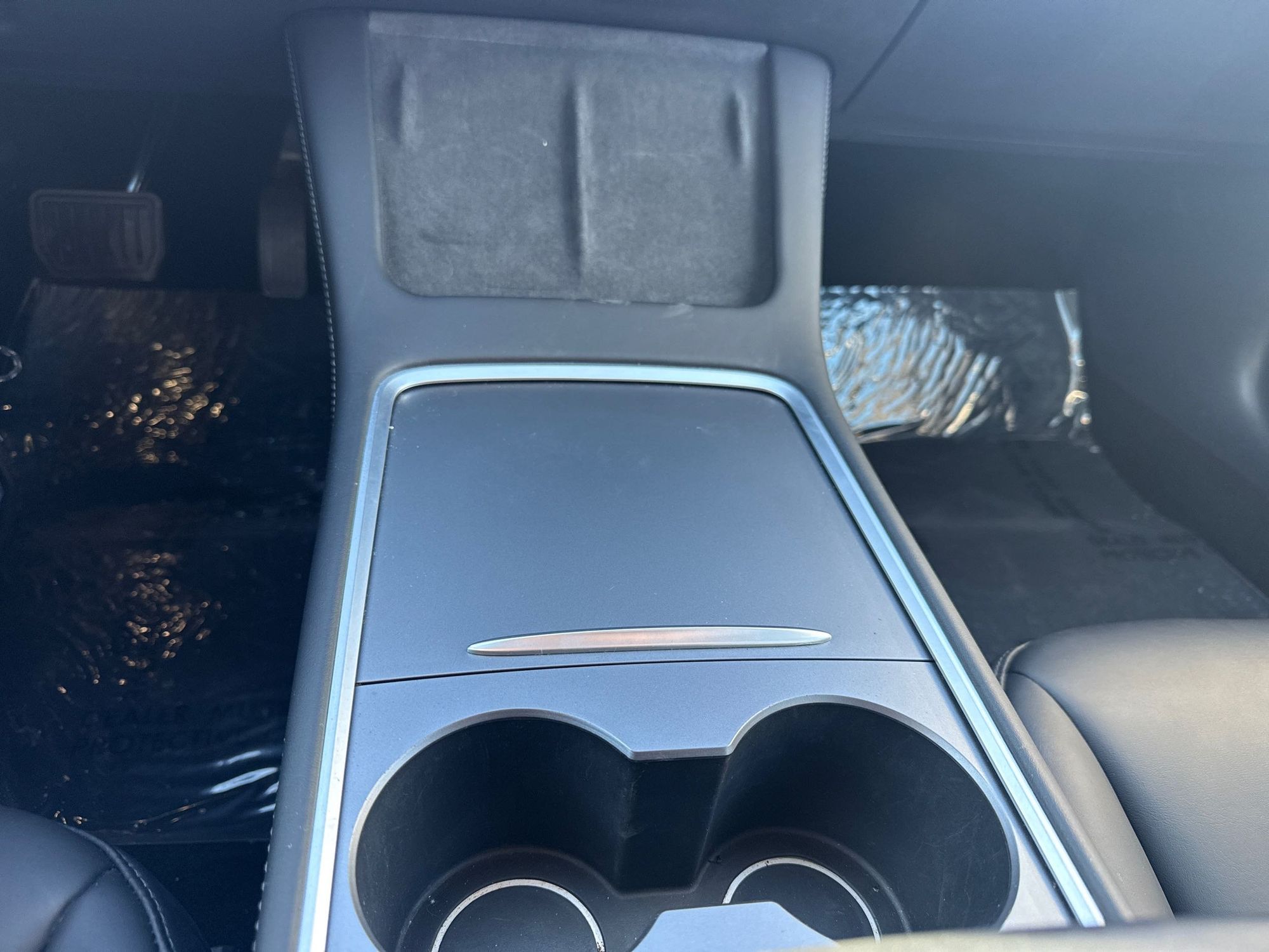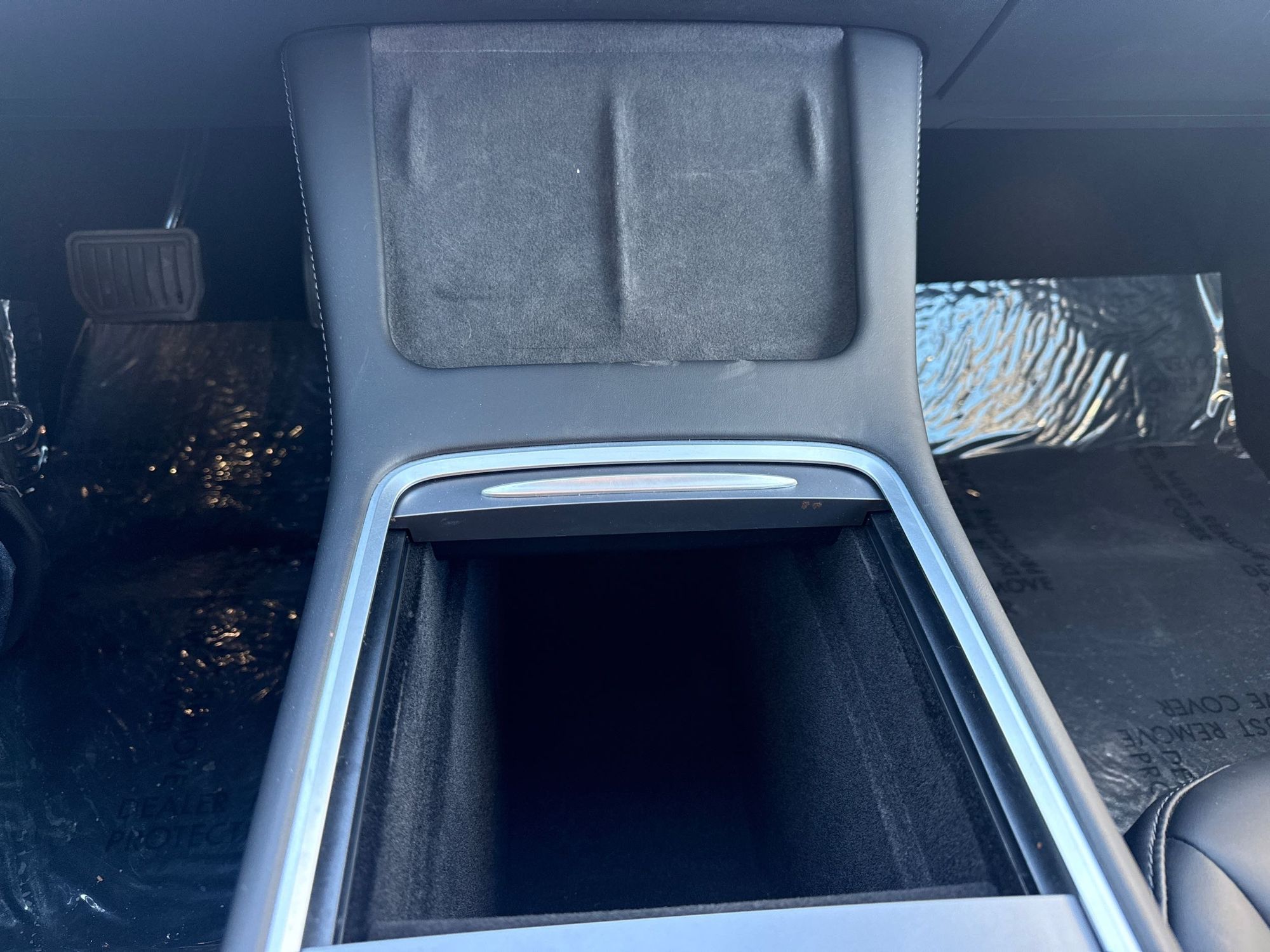 Floor console storage: Covered floor console storage