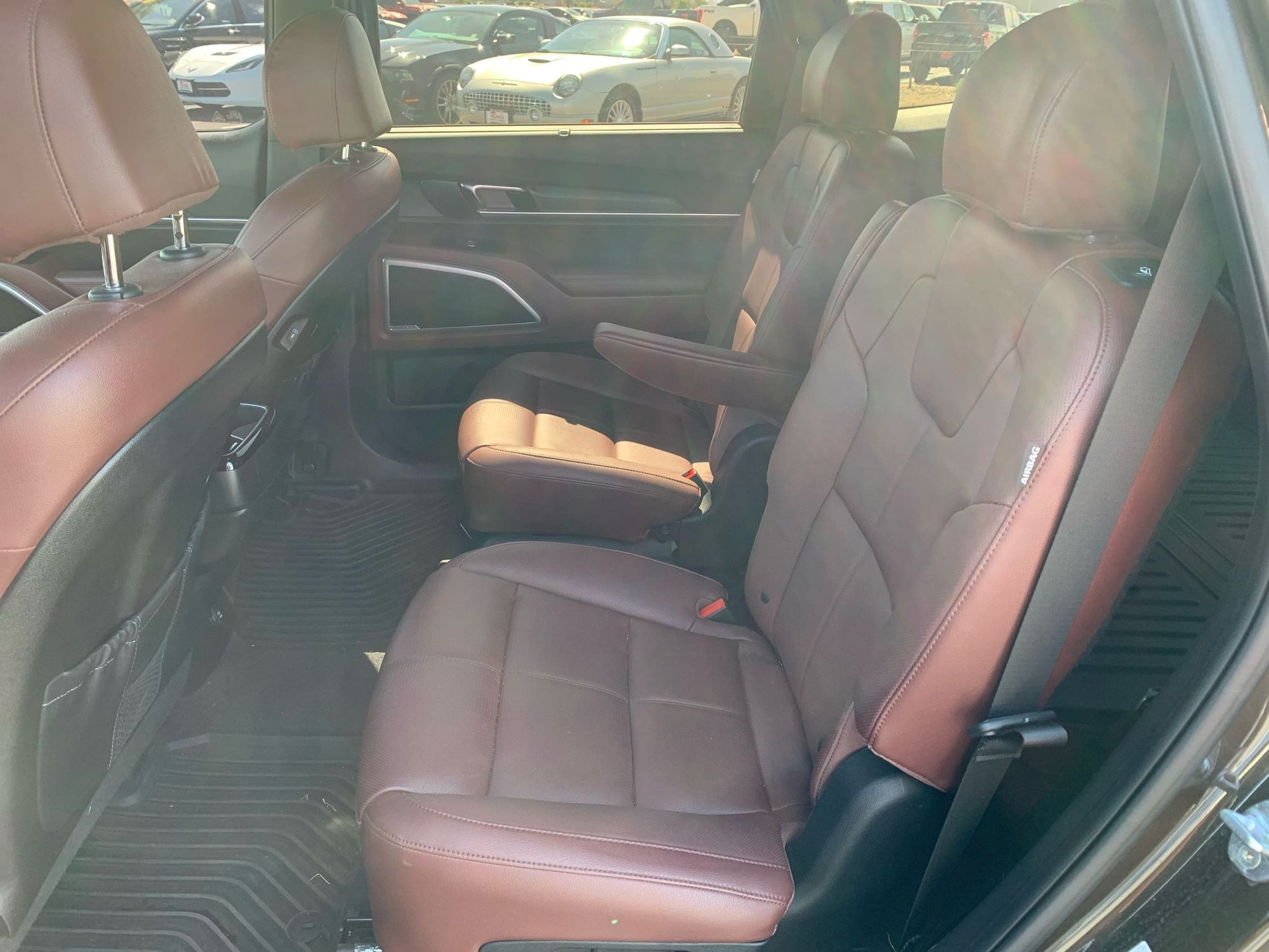 Third-row seatback upholstery: Carpet third-row seatback upholstery